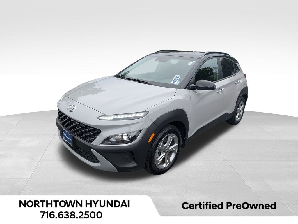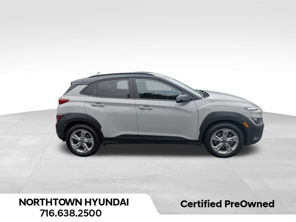 Certified. Cyber Silver w/Black Roof 2023 Hyundai Kona SEL AWD CVT 2.0L I4 DOHC Dual CVVT