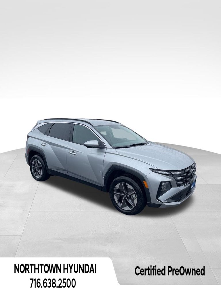 Certified. Shimmering Silver 2025 Hyundai Tucson SEL AWD 8-Speed Automatic with SHIFTRONIC 2.5L I4 DGI DOHC 16V LEV3-SULEV30 187hp AWD.