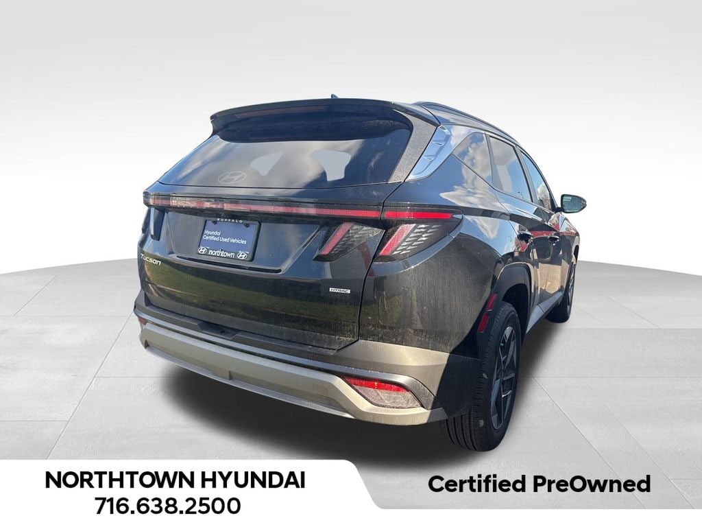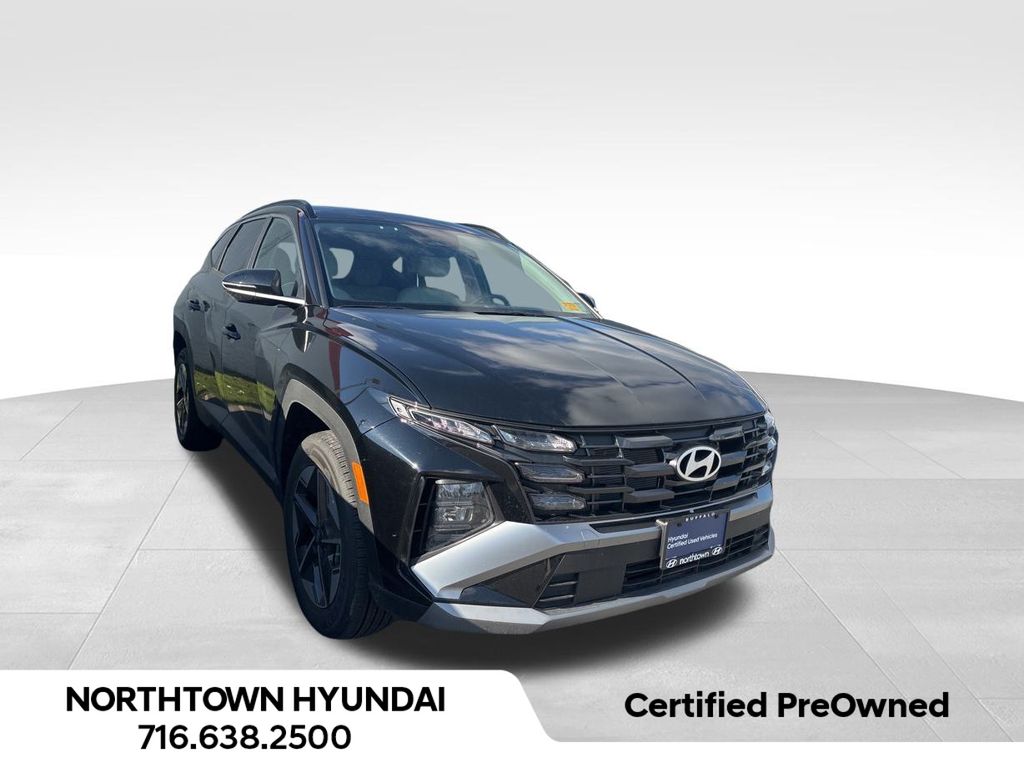 Clean CARFAX. Certified. Phantom Black 2025 Hyundai Tucson SEL Convenience Certified AWD 8-Speed Automatic with SHIFTRONIC 2.5L I4 DGI DOHC 16V LEV3-SULEV30 187hp AWD, ABS brakes, Active Cruise Control, Alloy wheels, Electronic Stability Control, Front dual zone A/C, Heated door mirrors, Heated Front Bucket Seats, Heated front seats, Illuminated entry, Low tire pressure warning, Navigation System, Power Liftgate, Power moonroof, Remote keyless entry, Traction control.