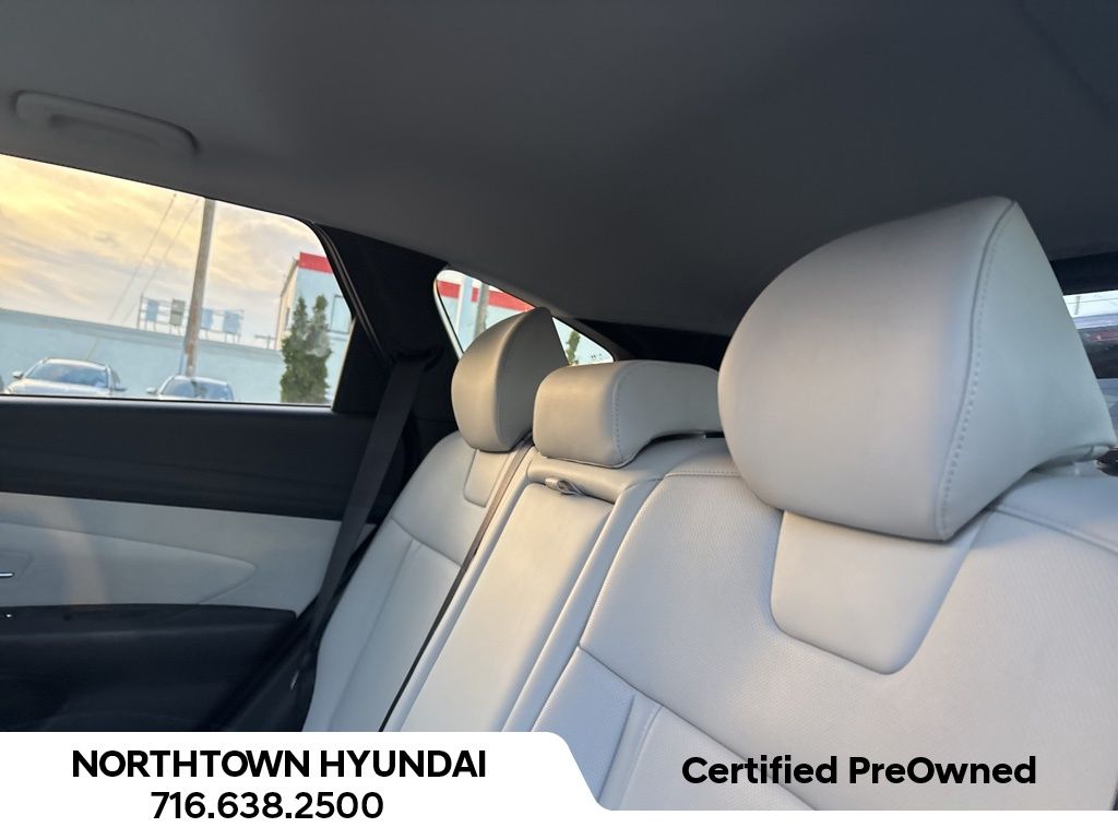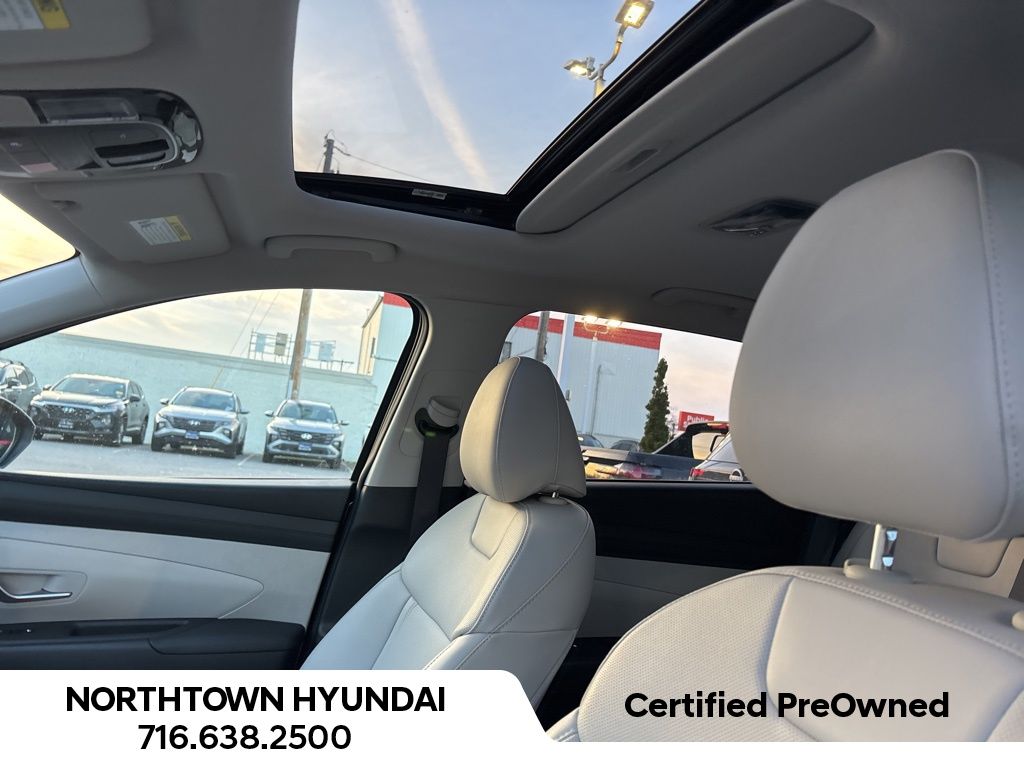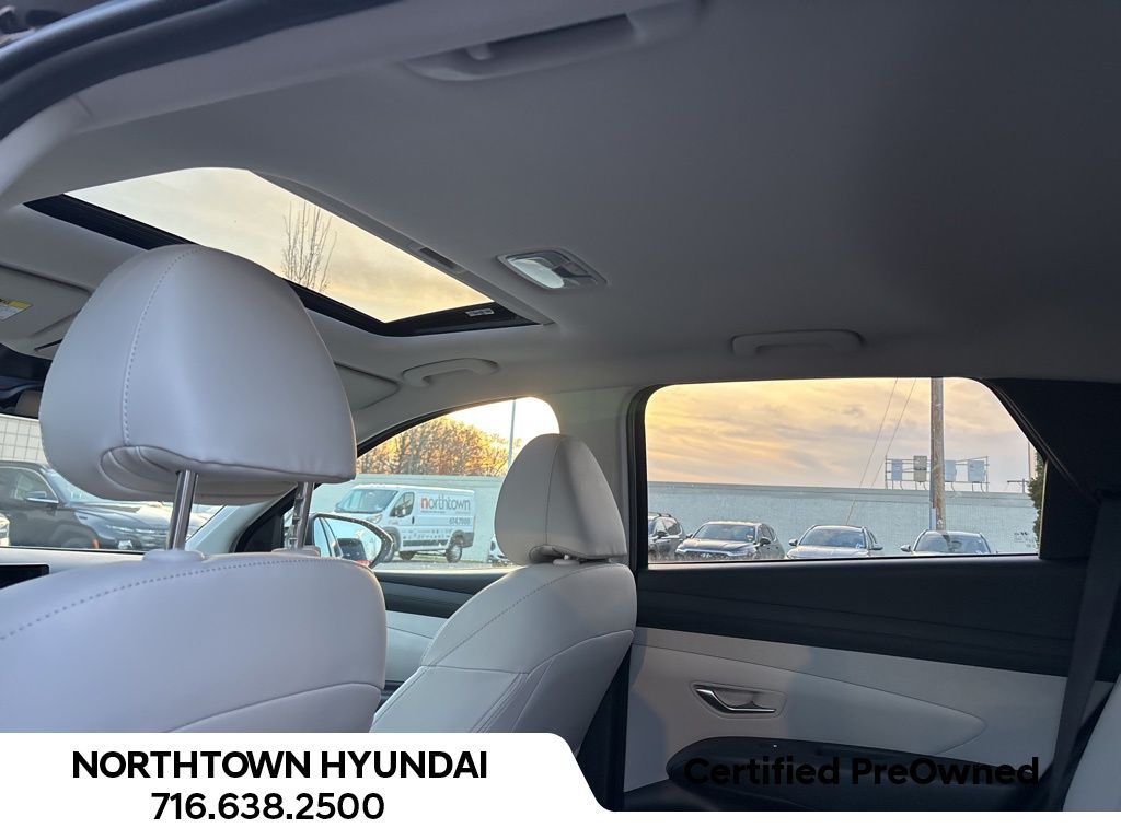 Clean CARFAX. Certified. Phantom Black 2025 Hyundai Tucson SEL Convenience Certified AWD 8-Speed Automatic with SHIFTRONIC 2.5L I4 DGI DOHC 16V LEV3-SULEV30 187hp AWD, ABS brakes, Active Cruise Control, Alloy wheels, Electronic Stability Control, Front dual zone A/C, Heated door mirrors, Heated Front Bucket Seats, Heated front seats, Illuminated entry, Low tire pressure warning, Navigation System, Power Liftgate, Power moonroof, Remote keyless entry, Traction control.