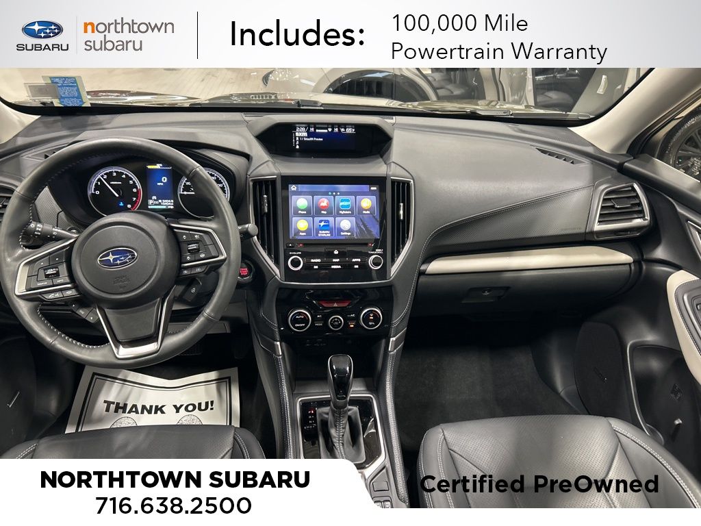 See the rest of our inventory at: NORTHTOWNSUBARU.COM Subaru Certified Pre-Owned Certified, 3.70 Axle Ratio, 4-Wheel Disc Brakes, 6 Speakers, ABS brakes, Air Conditioning, Alloy wheels, AM/FM radio: SiriusXM, Anti-whiplash front head restraints, Auto High-beam Headlights, Automatic temperature control, Brake assist, Bumpers: body-color, CD player, Driver door bin, Driver vanity mirror, Dual front impact airbags, Dual front side impact airbags, Electronic Stability Control, Emergency communication system: STARLINK Safety and Security (Subscription Required), Exterior Parking Camera Rear, Four wheel independent suspension, Front anti-roll bar, Front Bucket Seats, Front Center Armrest, Front dual zone A/C, Front fog lights, Front reading lights, Fully automatic headlights, Heated door mirrors, Heated Front Bucket Seats, Heated front seats, Illuminated entry, Knee airbag, Leather Shift Knob, Low tire pressure warning, Occupant sensing airbag, Outside temperature display, Overhead airbag, Overhead console, Panic alarm, Passenger door bin, Passenger vanity mirror, Perforated Leather-Trimmed Upholstery, Power door mirrors, Power driver seat, Power Liftgate, Power moonroof: Panoramic, Power steering, Power windows, Radio data system, Radio: Subaru Starlink 8.0" Multimedia Plus System, Rear anti-roll bar, Rear seat center armrest, Rear window defroster, Rear window wiper, Remote keyless entry, Roof rack: rails only, Security system, Speed control, Speed-sensing steering, Split folding rear seat, Spoiler, STARLINK/Apple CarPlay/Android Auto, Steering wheel mounted audio controls, Tachometer, Telescoping steering wheel, Tilt steering wheel, Traction control, Trip computer, Turn signal indicator mirrors, Variably intermittent wipers, and Wheels: 18" x 7.0 J Black Machine Finish Alloy.