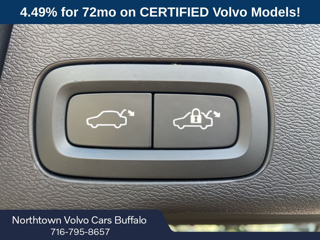 Climate Package (Heated Rear Seats and Heated Steering Wheel), Protection Package Premier (Bumper Cover, Cargo Tray, First Aid Kit, Rubber Floor Mats, and Wheel Locks), Volvo Certified Pre-Owned Certified, AWD, Air Purifier, Heated front seats, Leather Upholstery, Power moonroof, Power Operated Tailgate, Radio: harman/kardon Premium Sound, Wheels: 20" 5-Y Spoke Black Diamond Cut Alloy, 10 Speakers, 4-Wheel Disc Brakes, ABS brakes, Air Conditioning, Alloy wheels, AM/FM radio: SiriusXM, Anti-whiplash front head restraints, Apple CarPlay, Auto High-beam Headlights, Auto-dimming door mirrors, Auto-dimming Rear-View mirror, Automatic temperature control, Brake assist, Bumpers: body-color, Delay-off headlights, Driver door bin, Driver vanity mirror, Dual front impact airbags, Dual front side impact airbags, Electronic Stability Control, Emergency communication system: Volvo Cars App w/4 Year Subscription, Exterior Parking Camera Rear, Four wheel independent suspension, Front anti-roll bar, Front Bucket Seats, Front Center Armrest, Front dual zone A/C, Front fog lights, Front reading lights, Fully automatic headlights, Garage door transmitter: HomeLink, Genuine wood console insert, Genuine wood dashboard insert, Heated door mirrors, Heated Front Bucket Seats, Illuminated entry, Knee airbag, Leather Shift Knob, Low tire pressure warning, Memory seat, Occupant sensing airbag, Outside temperature display, Overhead airbag, Panic alarm, Passenger door bin, Passenger vanity mirror, Power door mirrors, Power driver seat, Power passenger seat, Power steering, Power windows, Radio data system, Radio: High Performance Audio System, Rain sensing wipers, Rear anti-roll bar, Rear fog lights, Rear reading lights, Rear seat center armrest, Rear window defroster, Rear window wiper, Remote keyless entry, Security system, Speed control, Split folding rear seat, Spoiler, Steering wheel mounted audio controls, Tachometer, Telescoping steering wheel, Tilt steering wheel, Traction control, Trip computer, Turn signal indicator mirrors, and Variably intermittent wipers.