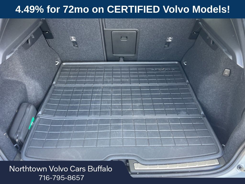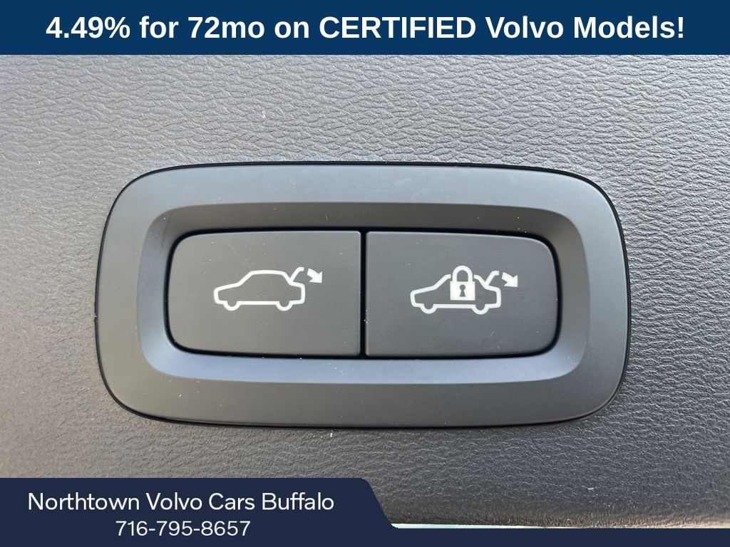 Climate Package (Heated Rear Seats and Heated Steering Wheel), Internet access capable: Digital Services Package w/ 4 Year Subscription, Protection Package (All-Weather Floor Mats and Cargo Tray), Volvo Certified Pre-Owned Certified, harman/kardon® Logic 7® Digital Surround, Heated front seats, Leather Seating Surfaces, Navigation System, Power moonroof, Power Operated Tailgate, Trunk Spoiler, Wheels: 20" 5-Double Spoke Black Alloy, 4-Wheel Disc Brakes, 8 Speakers, ABS brakes, Air Conditioning, Alloy wheels, AM/FM radio: SiriusXM, Apple CarPlay, Auto High-beam Headlights, Auto-dimming door mirrors, Auto-dimming Rear-View mirror, Automatic temperature control, Brake assist, Bumpers: body-color, Delay-off headlights, Driver door bin, Driver vanity mirror, Dual front impact airbags, Dual front side impact airbags, Electronic Stability Control, Emergency communication system, Exterior Parking Camera Rear, Four wheel independent suspension, Front anti-roll bar, Front Bucket Seats, Front Center Armrest, Front dual zone A/C, Front fog lights, Front reading lights, Fully automatic headlights, Garage door transmitter: HomeLink, Heated door mirrors, Heated Front Seats, Illuminated entry, Knee airbag, Low tire pressure warning, Memory seat, Occupant sensing airbag, Outside temperature display, Overhead airbag, Overhead console, Panic alarm, Passenger door bin, Passenger vanity mirror, Power door mirrors, Power driver seat, Power Liftgate, Power passenger seat, Power steering, Power windows, Radio data system, Radio: 250W High Performance Audio System, Rain sensing wipers, Rear anti-roll bar, Rear fog lights, Rear reading lights, Rear seat center armrest, Rear window defroster, Rear window wiper, Remote keyless entry, Security system, Speed control, Speed-sensing steering, Split folding rear seat, Spoiler, Steering wheel mounted audio controls, Tachometer, Telescoping steering wheel, Tilt steering wheel, Traction control, Trip computer, Turn signal indicator mirrors, and Variably intermittent wipers.