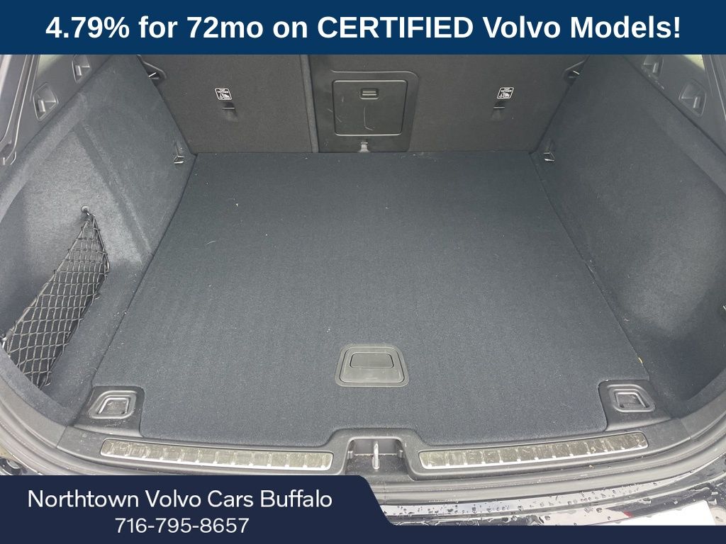 Volvo Certified Pre-Owned Certified, 14 Speakers, 4-Wheel Disc Brakes, ABS brakes, Air Conditioning, Alloy wheels, AM/FM radio: SiriusXM, Anti-whiplash front head restraints, Apple CarPlay, Auto High-beam Headlights, Auto-dimming door mirrors, Auto-dimming Rear-View mirror, Automatic temperature control, Brake assist, Bumpers: body-color, Delay-off headlights, Driver door bin, Driver vanity mirror, Dual front impact airbags, Dual front side impact airbags, Electronic Stability Control, Emergency communication system: Volvo Cars App w/4 Year Subscription, Four wheel independent suspension, Front anti-roll bar, Front Bucket Seats, Front Center Armrest, Front dual zone A/C, Front fog lights, Front reading lights, Fully automatic headlights, Garage door transmitter: HomeLink, Genuine wood dashboard insert, harman/kardon® Speakers, Heads-Up Display, Heated door mirrors, Heated Front Bucket Seats, Heated front seats, Illuminated entry, Knee airbag, Low tire pressure warning, Memory seat, Navigation system: Sensus Navigation, Occupant sensing airbag, Outside temperature display, Overhead airbag, Overhead console, Panic alarm, Passenger door bin, Passenger vanity mirror, Perforated Nappa Leather Seating Surfaces, Power door mirrors, Power driver seat, Power moonroof, Power passenger seat, Power steering, Power windows, Radio data system, Radio: harman/kardon Premium Sound, Rain sensing wipers, Rear air conditioning, Rear anti-roll bar, Rear dual zone A/C, Rear fog lights, Rear reading lights, Rear seat center armrest, Rear window defroster, Rear window wiper, Remote keyless entry, Security system, Speed control, Speed-sensing steering, Split folding rear seat, Spoiler, Steering wheel mounted audio controls, Tachometer, Telescoping steering wheel, Tilt steering wheel, Traction control, Trip computer, Turn signal indicator mirrors, Variably intermittent wipers, Ventilated front seats, and Wheels: 19" 5-Double Spoke Black Diamond-Cut Alloy.