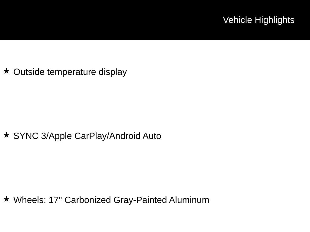 - Smart device integration: SYNC 3/Apple CarPlay/Android Auto