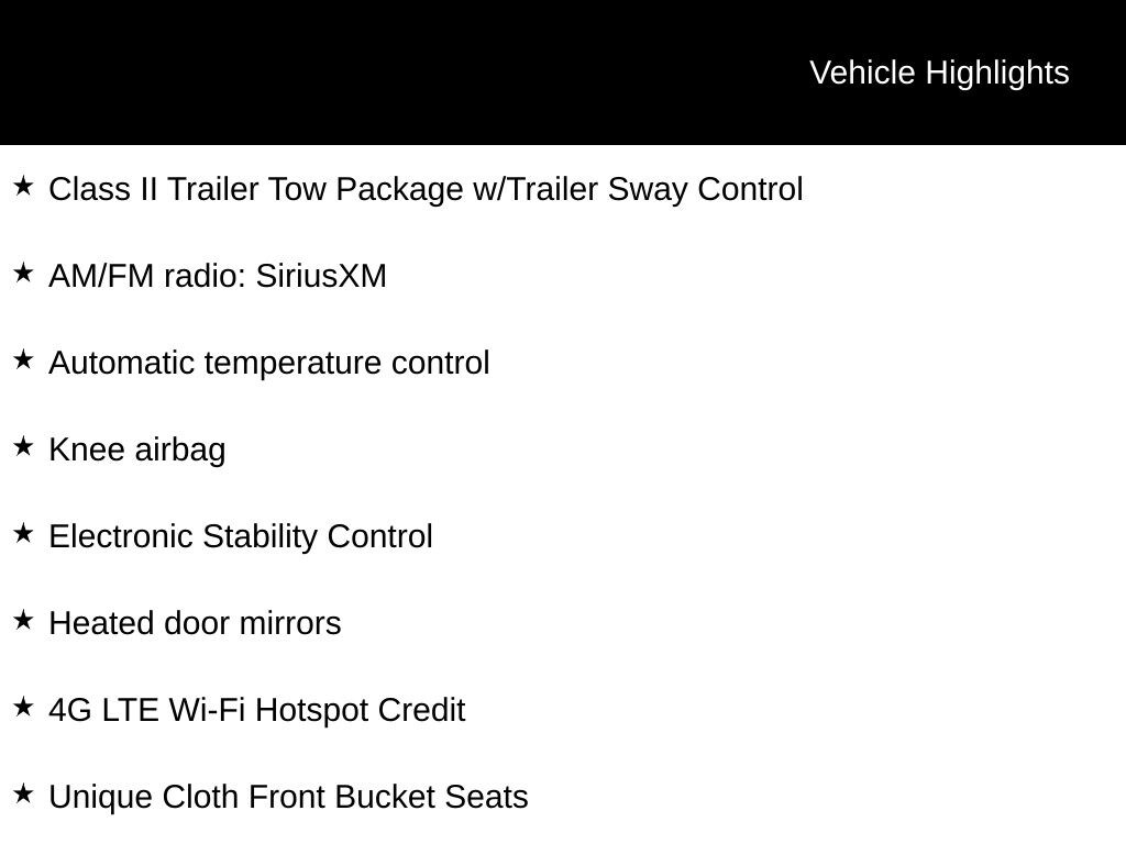 NOTICE: Price does not include applicable taxes, including sales, use and tire taxes, fees for registration, title and license plates and dealer document/service fees. Vehicle availability, pricing, and description are subject to change without prior notice. While we make every effort to provide accurate information on this site, the actual description and condition of the vehicle must be verified by you at the time of purchase. Interest rates (APR) and financing terms are based on, among other things, your credit and the age, model and purchase price of the vehicle. Gas mileage ratings are based on EPA estimates and mileage will vary depending on options, driving conditions, driving habits, and fuel quality. While every reasonable effort is made to ensure the accuracy of this information, we are not responsible for any errors or omissions contained on these pages. We cannot guarantee a vehicle will be available for delivery when requested. We cannot guarantee a recall-free vehicle. For recall information please click here - website provided by NHTSA.