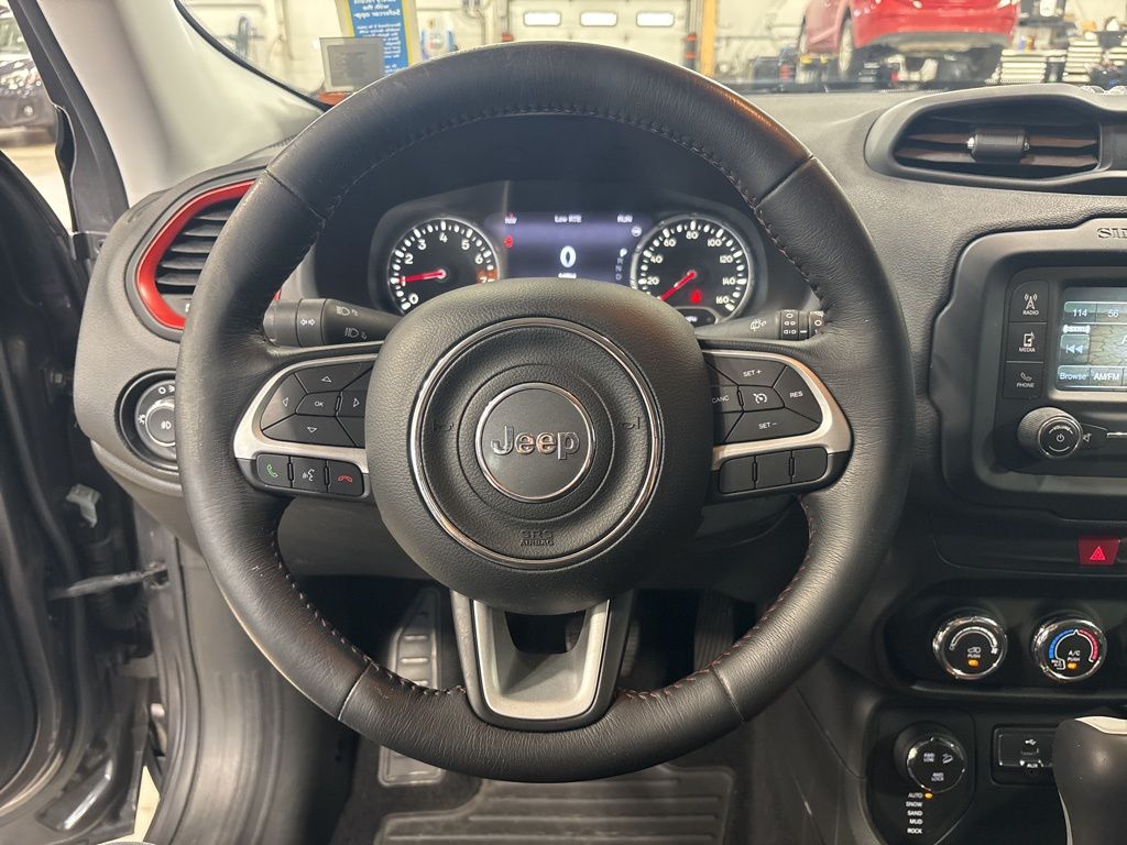 Step inside and you'll be greeted by a wealth of premium amenities, including a 5-inch Uconnect display, air conditioning, power windows, and a leather-wrapped steering wheel. The Renegade Trailhawk also boasts a host of safety features, such as dual front impact airbags, dual front side impact airbags, and an anti-whiplash front head restraint system, ensuring your peace of mind on every journey.