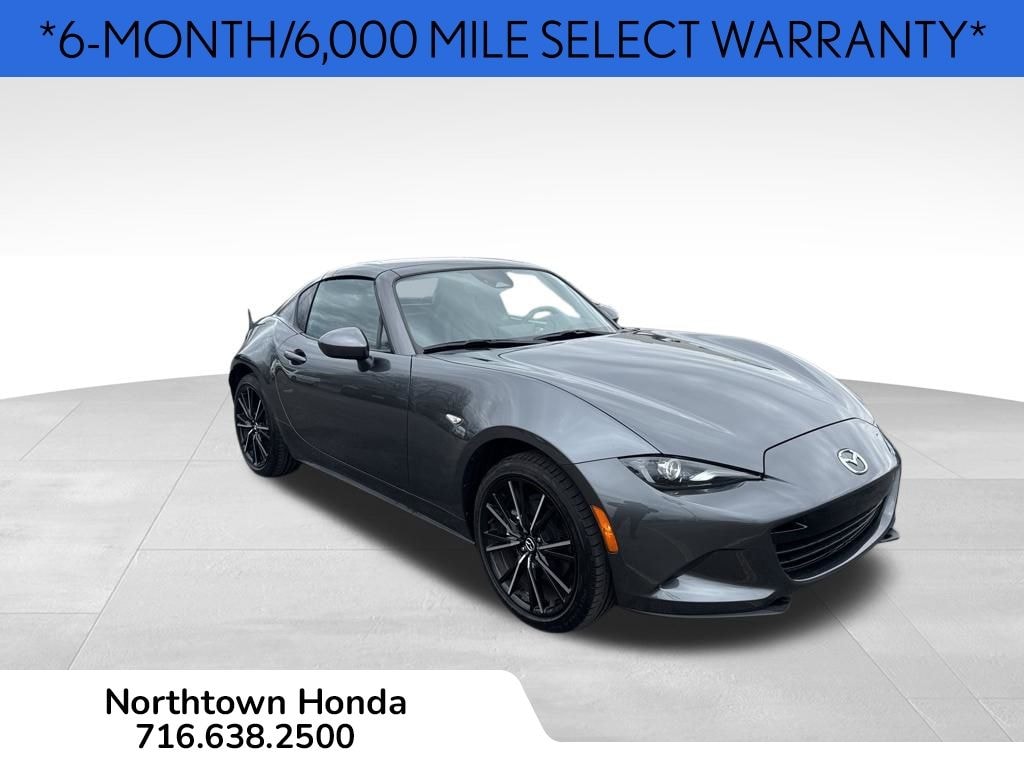 Meticulously equipped with a host of premium features, this MX-5 Miata RF Grand Touring is the perfect companion for the discerning automotive enthusiast. Indulge in the convenience of the - 6-MONTH/6,000 MILE SELECT WARRANTY, the Weather Package with Cargo Tray and All Weather Floor Mats, and the stunning Machine Gray Metallic paint.
