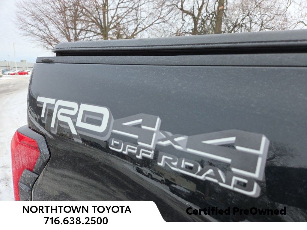 See the rest of inventory at Northtowntoyota.com Towing Package, TRD Convenience Package (32 Gallon Fuel Tank, Blind Spot Monitor w/Lane Change Assist, Heated Outside Mirrors, and Parking Support Alert/Brake), TRD Off-Road Premium Package (Bedside TRD Off Road Decal, Black Grille w/Chrome Surround, Front & Rear Mud Guards, SofTex Seat Trim, and TRD Off-Road Suspension w/Bilstein Shocks), 18" Alloy Wheels, 3.31 Axle Ratio, 4-Way Adjustable Front Bucket Seats, 4-Wheel Disc Brakes, 9 Speakers, ABS brakes, Air Conditioning, Alloy wheels, AM/FM radio: SiriusXM, Apple CarPlay/Android Auto, Auto High-beam Headlights, Automatic temperature control, Blind Spot Monitor, Brake assist, Bumpers: body-color, Delay-off headlights, Driver door bin, Driver vanity mirror, Dual front impact airbags, Dual front side impact airbags, Electronic Stability Control, Emergency communication system: Safety Connect with 1-year trial, Exterior Parking Camera Rear, Fabric Seat Trim, Front anti-roll bar, Front Bucket Seats, Front Center Armrest, Front fog lights, Front reading lights, Front wheel independent suspension, Fully automatic headlights, Heated door mirrors, Heated Leather Steering Wheel, Illuminated entry, Knee airbag, Low tire pressure warning, Occupant sensing airbag, Outside temperature display, Overhead airbag, Overhead console, Panic alarm, Passenger door bin, Passenger vanity mirror, Power door mirrors, Power steering, Power windows, Radio data system, Radio: Audio Multimedia System, Rear reading lights, Rear step bumper, Rear window defroster, Remote keyless entry, Safety Connect, Security system, Speed control, Speed-sensing steering, Split folding rear seat, Steering wheel mounted audio controls, Tachometer, Telescoping steering wheel, Tilt steering wheel, Traction control, Trip computer, Turn signal indicator mirrors, Variably intermittent wipers, and VoltmeteR.